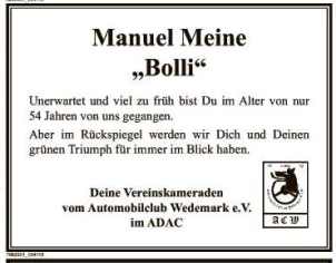 Anlässlich der Jahreshauptversammlung wurde der Clubbeitrag auf 6,- Euro pro Jahr gesenkt! Das ist doch ein Grund für jeden Motorsport- oder Oldtimerfreund, dem ACW beizutreten. Besonders freuen wir uns auf neue Mitglieder, die auch im ADAC sind!
